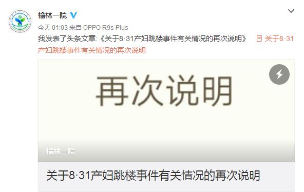 《關(guān)于8·31產(chǎn)婦跳樓事件有關(guān)情況的再次說明》全文如下: