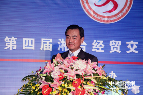 2008年11月16日,中共中央臺辦、國務院臺辦主任王毅出席在湖南湘潭舉行的“第四屆湘臺經貿交流合作會”開幕式,并發表講話。鐘寶華攝