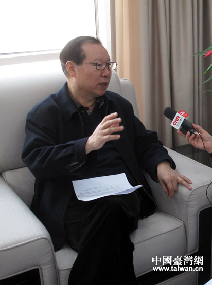 海協(xié)會(huì)副會(huì)長(zhǎng)王在希(左)接受記者采訪(中國(guó)臺(tái)灣網(wǎng)發(fā) 穆亮龍 攝)