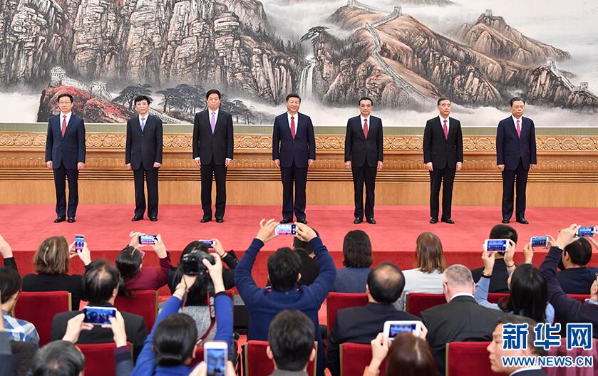 世界的目光再次聚焦中國,剛剛在中國共產黨第十九屆中央委員會第一次全體會議上當選的中共中央總書記習近平和中共中央政治局常委李克強、栗戰書、汪洋、王滬寧、趙樂際、韓正,25日中午在人民大會堂同采訪中共十九大的中外記者親切見面。