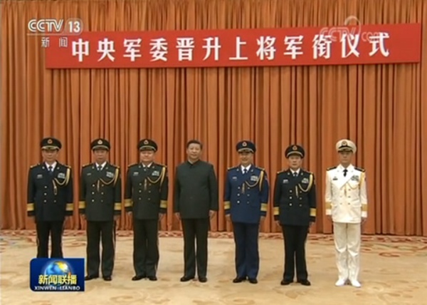 習近平向晉升上將軍銜的張升民頒發命令狀
