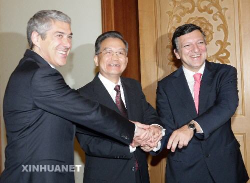 11月28日,國(guó)務(wù)院總理溫家寶在北京人民大會(huì)堂與歐盟輪值主席國(guó)葡萄牙總理蘇格拉底(左)和歐盟委員會(huì)主席巴羅佐舉行第十次中歐領(lǐng)導(dǎo)人會(huì)晤。 新華社記者姚大偉攝