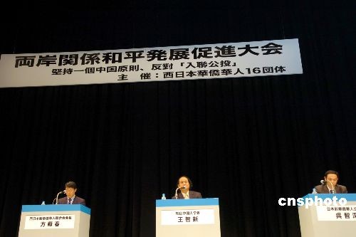 3月16日,西日本華僑華人16團體約300人在大阪聯(lián)合舉行“兩岸關系和平發(fā)展促進大會”并發(fā)表了題為“強烈反對臺灣當局的‘入聯(lián)公投’,堅決維護兩岸和平發(fā)展”的聯(lián)合聲明。圖為王智新、吳智深、方蘇春等旅日學者在大會上就“入聯(lián)公投”的背景、“臺獨”勢力的發(fā)展與日本、海外華人華僑對兩岸關系的態(tài)度等問題進行討論。 中新社發(fā) 朱沿華 攝