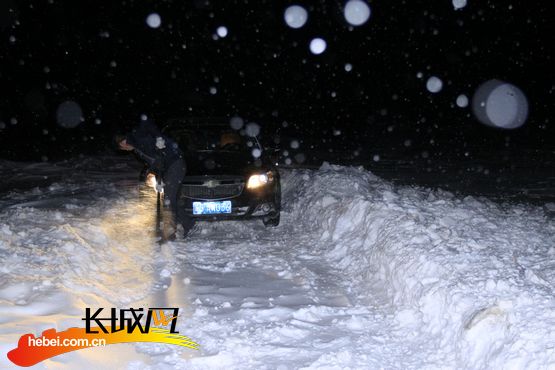 長城網張家口2016年1月2日訊(記者張世豪 通訊員胡年帥牛占忠)2015年12月29日,記者同康保縣委宣傳部兩名同志前往該縣屯墾鎮范家營行政村進行走基層采訪。返回途中,車輛被困于蘇計溝自然村(屬于范家營行政村,行政村與自然村相隔三公里)南三公里處的積雪中,冰雪托住底盤,進退兩難;在白毛風中艱難地自救兩個多小時,車輛仍未脫困;經聯系,蘇計溝村七名村民冒雪輾轉步行十多公里,于夜間來到事發地,在他們的幫助下,記者一行脫困。