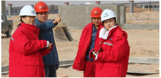 該項(xiàng)目地處戈壁荒漠的風(fēng)區(qū),夏季氣溫高、春秋季風(fēng)沙大。項(xiàng)目今年6月開(kāi)工,一個(gè)月內(nèi)多數(shù)時(shí)間為沙塵天氣,對(duì)施工進(jìn)度影響很大,項(xiàng)目副經(jīng)理魏忠亮說(shuō)最大的挑戰(zhàn)是地質(zhì)條件復(fù)雜、建筑基礎(chǔ)開(kāi)挖困難。地下打孔,1米5到2米,注水,浸泡, 施工區(qū)的所有用水是從30公里外的駱駝圈子拉運(yùn)來(lái)的。