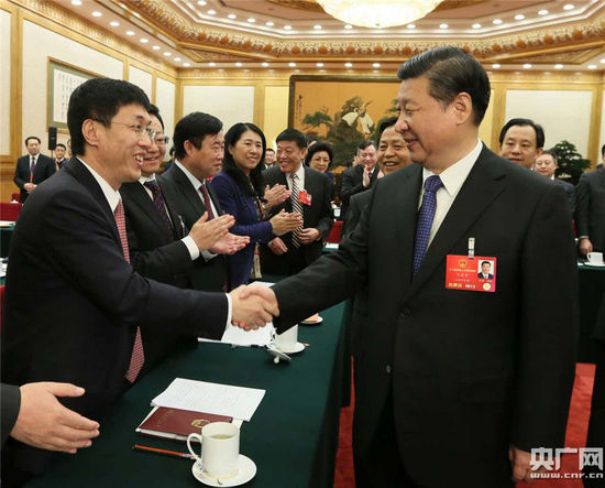 中共中央總書記、國(guó)家主席、中央軍委主席習(xí)近平來(lái)到十二屆全國(guó)人大四次會(huì)議黑龍江代表團(tuán)參加審議。新華社記者 蘭紅光 攝