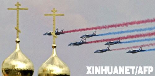 8月26日,在俄羅斯第八屆國際航空航天展上,法國的“法蘭西巡邏兵”飛行表演隊進行特技飛行表演。當日,俄羅斯第八屆國際航空航天展覽會在茹科夫斯基市閉幕。主辦方宣布,本次展會簽約金額為30億美元,共吸引了60萬人參觀。 新華社/法新