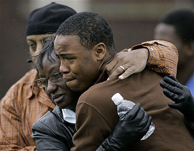 10月10日,在發生槍擊案的校園外人們互相安慰。(圖片來自:CSBNEWS)