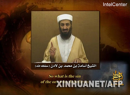 資料圖片:美國英特爾中心9月11日提供的這幅錄像截圖顯示了“基地”組織領導人本·拉丹正在發表講話。在“9·11”事件6周年之際,包含“基地”組織領導人本·拉丹講話的錄像帶再度出現。新華社/法新