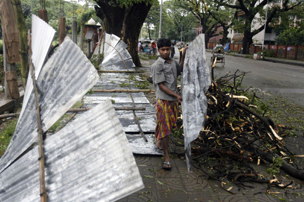 當地電視臺的報道說,有100多條漁船在風暴來襲時被困在海上,由于設備簡陋,他們沒有收到當局播報的風暴警告。風暴摧毀了沿岸數千間簡陋的泥草房,將很多人掩埋在下面,大樹被連根拔起,電線桿被刮倒,成片的莊稼和魚塘被毀。在首都達卡,大風甚至把街上廣告牌刮得滿天亂飛。