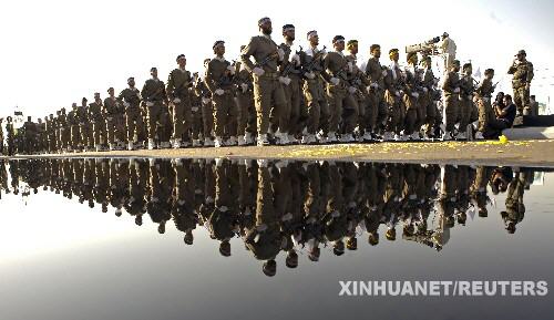 這是2007年9月22日,伊朗革命衛隊成員在首都德黑蘭參加紀念兩伊戰爭閱兵式的資料照片。 新華社/路透