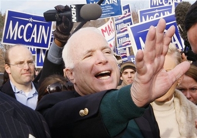 中新網(wǎng)1月9日電 據(jù)美國媒體報道,1月9日,麥凱恩在新罕布什爾州共和黨初選中獲勝。1月8日舉行的美國新罕布什爾州初選是美國第一場正式初選。