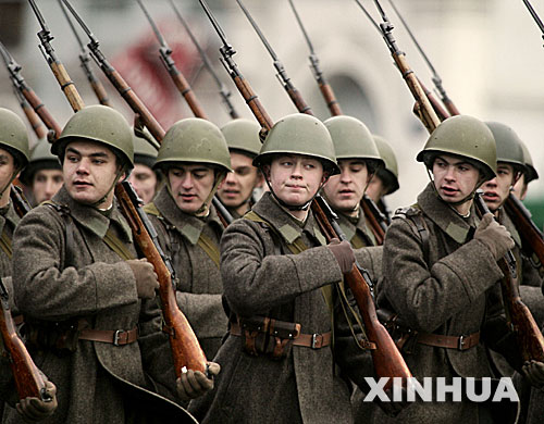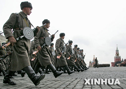 2006年11月7日,俄羅斯士兵在莫斯科紅場(chǎng)參加閱兵儀式,紀(jì)念1941年11月7日的紅場(chǎng)閱兵式舉行65周年。 新華社發(fā)