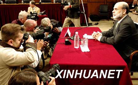 資料圖片:2007年11月8日,美國聯邦儲備委員會主席本·伯南克(右)出席美國國會聯合經濟委員會在華盛頓國會山舉行的聽證會。伯南克警告說未來幾個月美國經濟增長速度可能放緩。 新華社記者張巖攝