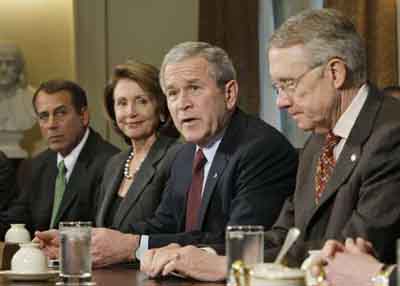 美國總統布什22日在白宮會見美國國會兩黨領導人