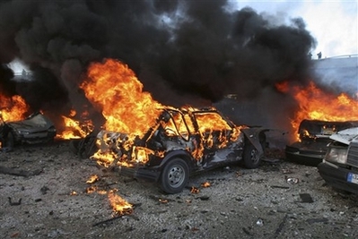 2007年6月,黎巴嫩國會議員瓦里德?埃多遭遇汽車炸彈襲擊喪生;9月,黎巴嫩議員加奈姆被暗殺;12月,黎巴嫩軍方將領哈吉(Franois el-Hajj)在汽車炸彈襲擊中遇難。一個多星期以前,貝魯特發生的一起汽車炸彈襲擊事件造成美國駐黎巴嫩大使館的一輛汽車在爆炸中受損,20多名平民傷亡。 |
