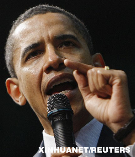 2月10日,美國民主黨總統競選人貝拉克·奧巴馬獲得第50屆格萊美獎最佳誦讀專輯獎。這是2月9日奧巴馬在美國緬因州班戈講話的照片。 新華社/路透