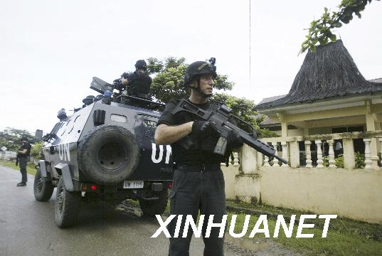 2月12日,來自葡萄牙的聯合國維和警察在東帝汶首都帝力的總統辦公室前警戒。當日,東帝汶臨時總統維森特·古特雷斯發表電視講話,宣布全國進入緊急狀態。