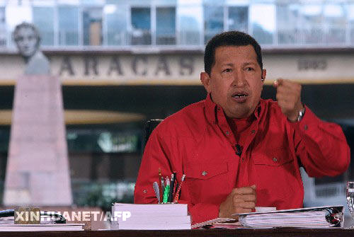 3月2日,在委內(nèi)瑞拉首都加拉加斯,委內(nèi)瑞拉總統(tǒng)烏戈·查韋斯在“你好,總統(tǒng)”電視節(jié)目上講話。當(dāng)天,查韋斯下令關(guān)閉委內(nèi)瑞拉駐哥倫比亞使館,撤出委內(nèi)瑞拉駐哥倫比亞使館的外交人員,并派兵前往委內(nèi)瑞拉與哥倫比亞兩國邊境。 新華社/法新