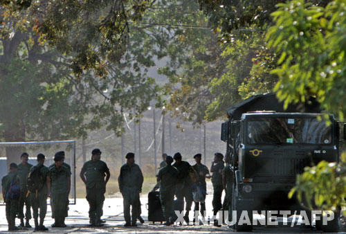 3月2日,在委內(nèi)瑞拉首都加拉加斯以西約100公里的馬拉凱,委內(nèi)瑞拉士兵駐扎在營地內(nèi)。當(dāng)天,委內(nèi)瑞拉總統(tǒng)烏戈·查韋斯下令關(guān)閉委內(nèi)瑞拉駐哥倫比亞使館,撤出委內(nèi)瑞拉駐哥倫比亞使館的外交人員,并派兵前往委內(nèi)瑞拉與哥倫比亞兩國邊境。 新華社/法新