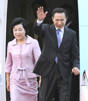 中新網4月21日電 綜合媒體報道,韓國總統李明博20日傍晚搭乘專機自美國抵達日本東京。這是他2月就任總統之后,首次訪日,也是時隔三年四個月之后韓國總統再度訪日。李明博二十一日預定與日本首相福田康夫舉行高峰會,針對朝鮮核武問題、安全保障體系等進行討論,并召開聯合記者會。