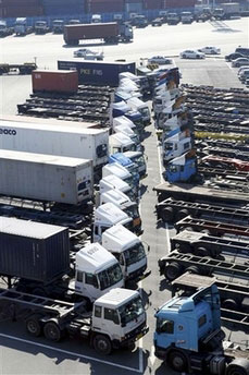 韓國政府表示,先向義王和釜山港緊急投入65輛軍用貨車,并確保100輛集裝箱貨車和200名司機,派往貨運狀況緊急的地區。 |