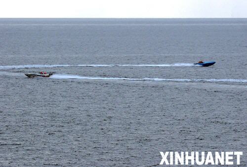 這張美國海軍2008年1月8日公布的資料照片顯示,被懷疑屬于伊朗伊斯蘭革命衛隊的快艇1月6日在霍爾木茲海峽國際水域的美國軍艦附近游弋。據伊朗《賈麥賈姆報》6月28日報道,伊朗伊斯蘭革命衛隊司令賈法里宣稱,伊朗若遭受軍事打擊將以控制海灣和霍爾木茲海峽的石油運輸通道來進行反抗。 新華社/法新