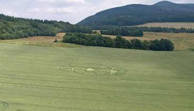 捷克首都布拉格以北110公里處的幾個“麥田怪圈”。