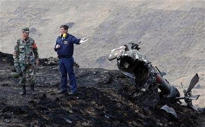 玻利維亞救援人員在直升機墜毀現場。