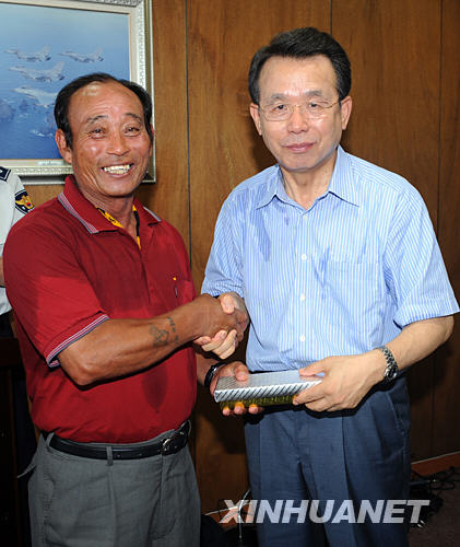 7月29日,韓國總理韓升洙(右)在位于韓國東部海域的獨島(日本稱“竹島”)看望島上的居民。 新華社/紐西斯通訊社