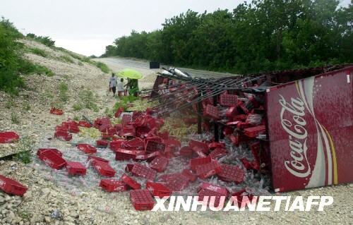 9月2日,在距離海地首都太子港約171公里的戈納伊夫附近,人們在公路旁收拾因熱帶風(fēng)暴“漢娜”翻倒的貨車上的貨物。熱帶風(fēng)暴“漢娜”1日升級為颶風(fēng),2日減弱為熱帶風(fēng)暴襲擊海地,已在當(dāng)?shù)卦斐芍辽?9人死亡。 新華社/法新
