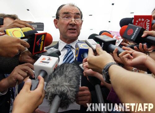 9月11日,據(jù)委內(nèi)瑞拉電視臺(tái)報(bào)道,委內(nèi)瑞拉總統(tǒng)查韋斯當(dāng)天要求美國駐委大使在72小時(shí)之內(nèi)離開委內(nèi)瑞拉。這是2008年5月20日在加拉加斯拍攝的美國駐委內(nèi)瑞拉大使帕特里克·達(dá)迪接受記者采訪的資料照片。 新華社/法新