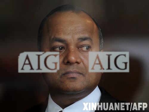 9月17日,一名保安在美國紐約的美國國際集團(AIG)的辦公大樓內透過玻璃查看。由于投資者對美國政府救助美國國際集團(AIG)能否結束金融危機持懷疑態度,以及美國8月份住房開工量跌至17年來新低,當日紐約股市三大股指暴跌4%以上。 新華社/法新
