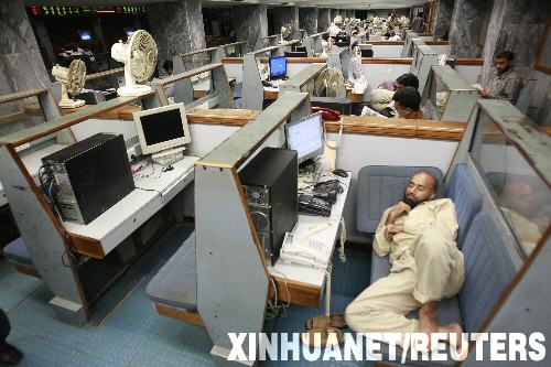9月16日,在巴基斯坦卡拉奇股票交易所,一名工作人員在交易大廳中睡覺。 新華社/路透 |