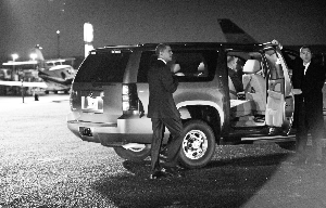 10月25日傍晚,新墨西哥州,結(jié)束了一天的競(jìng)選宣傳活動(dòng),奧巴馬準(zhǔn)備乘車(chē)奔向下一個(gè)起點(diǎn)。