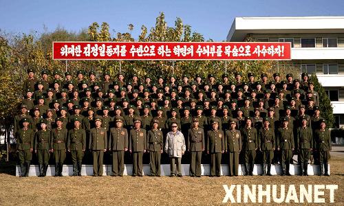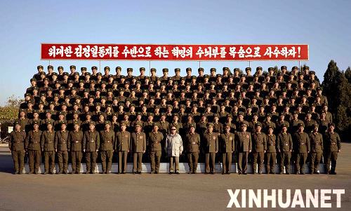 朝鮮媒體5日報道說,朝鮮最高領導人金正日視察了人民軍的兩支部隊,并觀看了軍事訓練表演。報道說,金正日視察了人民軍534部隊的訓練場,在視察人民軍2200部隊時,他登上觀禮臺觀看了戰士的軍事訓練。金正日強調人民軍部隊要十分重視對戰士的軍事和政治培訓。視察結束后,金正日與兩支部隊的官兵合影。這是金正日與人民軍534部隊官兵合影(拍攝日期不詳)。新華社/朝中社