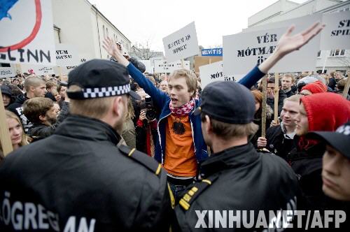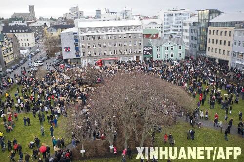 11月8日,在冰島首都雷克雅未克,民眾聚集在街頭舉行抗議活動(dòng),呼吁銀行公開(kāi)更多金融危機(jī)信息,并要求政府辭職。當(dāng)天的抗議活動(dòng)有三至四千人參加,這也是當(dāng)?shù)孛癖娺B續(xù)第四個(gè)周六在雷克雅未克舉行抗議,每周參與的人數(shù)都在增加。 新華社/法新