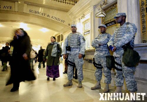 11月26日,在美國紐約的大中央車站,幾名美軍士兵在地鐵口警戒。當(dāng)日,美國聯(lián)邦政府發(fā)出警告,紐約地鐵和鐵路系統(tǒng)有可能在節(jié)日期間遭到恐怖襲擊,敦促當(dāng)?shù)貓?zhí)法部門加強(qiáng)安全保衛(wèi)。 新華社記者 侯俊 攝