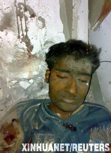 這是在印度孟買納里曼大樓內使用手機拍攝的被擊斃的恐怖嫌疑分子的尸體(11月28日攝)。印度孟買26日晚間到27日凌晨至少有10處地點發生恐怖襲擊事件,至今已造成195人死亡、295人受傷。 新華社/路透