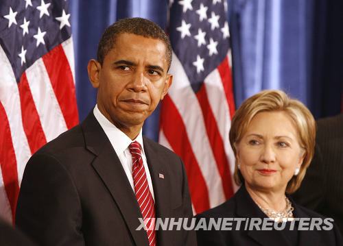 12月1日,美國當選總統奧巴馬(左)和紐約州國會參議員、前第一夫人希拉里(右)在芝加哥出席新聞發布會。當日,奧巴馬正式提名希拉里為新政府國務卿人選。新華社/路透