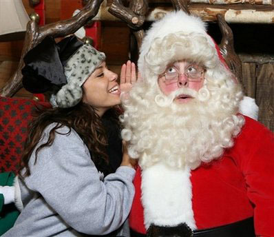 12月22日,一個女孩在美國加利福尼亞州的迪斯尼樂園和圣誕老人合影。(圖片來源:美聯(lián)社)