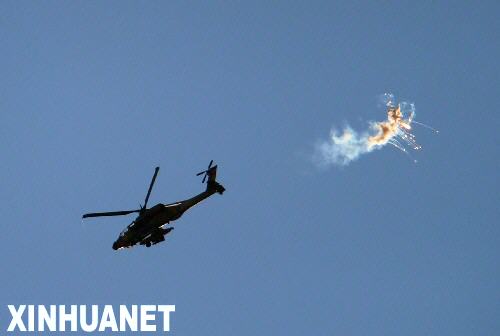 1月4日,一架以軍武裝直升機(jī)向在加沙地帶北部地區(qū)發(fā)射火箭彈。當(dāng)日,以軍繼續(xù)對加沙地帶進(jìn)行空中打擊,以配合地面進(jìn)攻。新華社記者 殷博古 攝