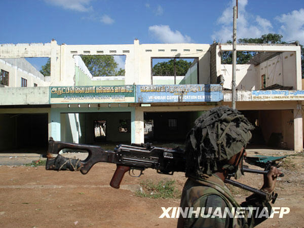 這張斯里蘭卡國防部1月3日發布的照片顯示,一名斯政府軍士兵進入首都科倫坡以北約330公里的反政府武裝泰米爾伊拉姆猛虎解放組織(猛虎組織)的大本營基利諾奇。新華社/法新