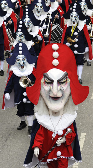 2月1日,德國(guó)南部城市弗萊堡舉行第75屆嘉年華會(huì),狂歡者身著盛裝,帶著怪異的面具在街道上游行。