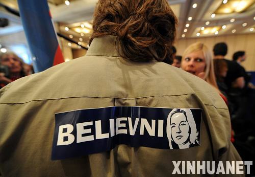 2月10日,在以色列特拉維夫,以色列外長、前進黨主席利夫尼的支持者身著印有她頭像的服裝參加慶;顒。以色列媒體10日晚公布的出口民調結果顯示,中間派政黨前進黨在當晚結束的議會選舉中贏得最多席位,中右翼政黨利庫德集團位居第二。新華社記者殷博古攝