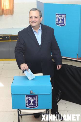 2月10日,以色列國防部長、工黨主席巴拉克在特拉維夫的一個投票站投票。新華社發