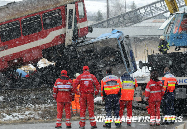 當地時間21日上午,一列火車與一輛公共汽車在鐵路與公路的道口相撞,道口沒有設置防護設施。有報道說,當時公共汽車司機欲搶在火車前通過。而火車時速達每小時70公里,火車司機雖然拉緊急制動閘,但為時已晚。公共汽車上的乘客正前往一個滑雪場準備滑雪。