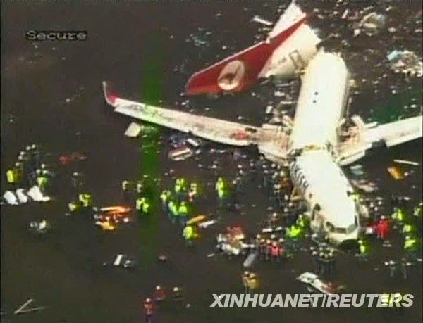 2月25日,一架土耳其航空公司的客機在荷蘭阿姆斯特丹的斯希普霍爾國際機場墜毀(航拍錄像截圖)。新華社/路透