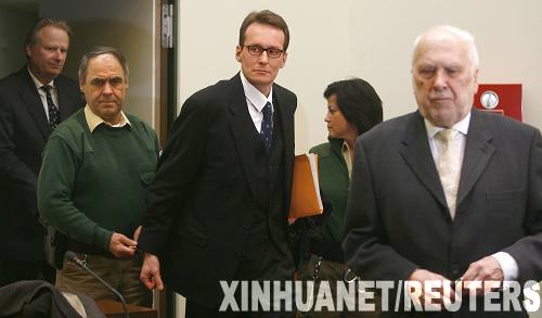 3月9日,瑞士男子黑爾格·斯加爾比(前)在德國慕尼黑的法庭等待開庭受審。斯加爾比因詐騙德國寶馬汽車公司繼承人之一的蘇珊?克拉騰而受到指控。瑞士、意大利和德國警方在查案過程中發現,斯加爾比先前至少3次以車禍致死黑幫親屬為借口實施詐騙。慕尼黑警方說,現年41歲的斯加爾比精于騙術,“在誘騙女人上鉤方面深知應該按哪些按鈕”。 新華社/法新