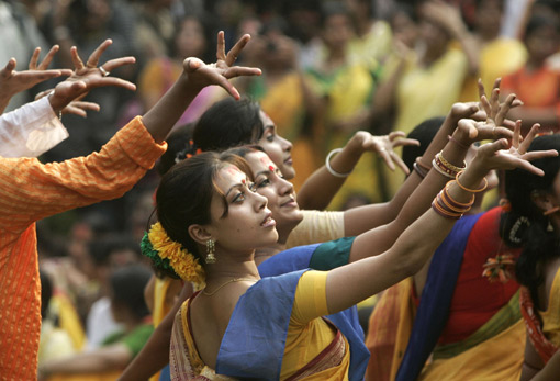 人們歡慶Holi節(jié)時(shí),女人們也顯出頑皮的一面。